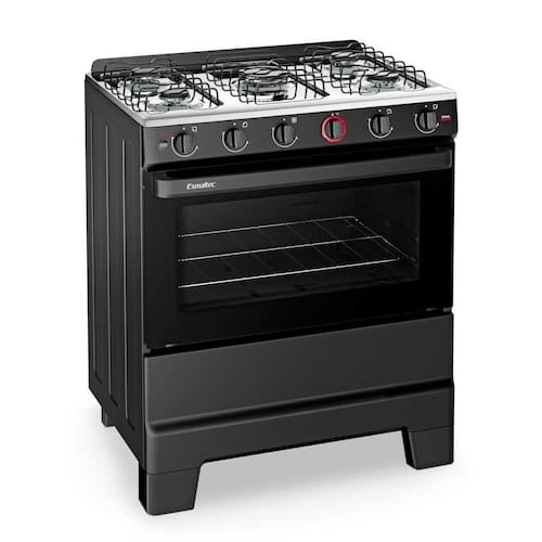 - Mesa de aço inox, com espaldar; - Acendimento automático; - Potência dos queimadores: 1 família - 2,0kW e 3 pequenos - 1,7kW. 1 super chama - 3,0kW (5Q); - Trempes com mais estabilidade: Mais segurança e estabilidade para as panelas; - Forno limpa fácil: mais facilidade na limpeza; - Capacidade do forne de 84 litros; - Amplo visor no forno: Mais visibilidade do preparo dos pratos; - Vidro interno removível: Mais facilidade para uma limpeza total do fogão; - Porta do forno em vidro total: Porta com amplo visor da parte interna; - Botão e puxador: Novos formatos com mais robustez e maior conforto ao toque; - Pés altos e retos: Novo formato com novo encaixe e mais segurança; - Protetor da estufa: Novo design com mais qualidade e robustez.