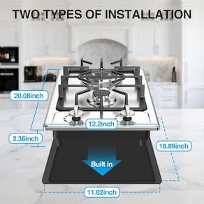21 - ?Fogão a gás de aço inoxidável??Sem mangueira??Bocal de gás universal para fogões: mangueira de diâmetro interno de 9 mm?Experimente cozinhar rápido e eficiente com este fogão a gás elegante e durável feito de aço inoxidável de alta qualidade, resistente ao desgaste e altas temperaturas. - ?Dois queimadores de alta eficiência? Eleve sua cozinha com este fogão a gás de 30 cm com 2 bocas, 3,3 kw e 1,1 kw para ferver e selar. Suas grades contínuas facilitam a movimentação de panelas e frigideiras, enquanto seus queimadores selados simplificam a limpeza. - ?Queimador a gás de estilo profissional? Este fogão a gás de 2 bocas fornece controle preciso do calor, garantindo resultados perfeitos sempre. As grelhas e puxadores duráveis adicionam um toque profissional, permitindo que você goste de cozinhar. - ?Tamanho adequado?O fogão a gás com 2 queimadores potentes fornece bastante poder de cozimento, enquanto seu tamanho compacto (31 x 51 cm) economiza espaço na sua bancada. - ?Conversão de dois gás?Esta placa de fogão a gás combustível duplo é projetada para gás natural e propano líquido. A ignição automática de pulso elétrico usa uma alimentação CA de 110-120 V. Flexível e conveniente de usar.