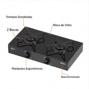 -01 Fogão à Gás Junior 2 Bocas Glass