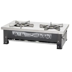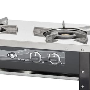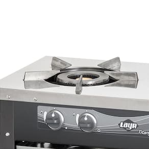 Queimador de ferro fundido c/chama tripla e controle individual das chamas externa e interna.