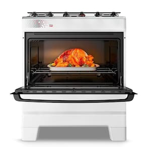 Design Inteligente: Os pés altos e retos facilitam a limpeza do piso abaixo do fogão, e a prateleira ajustável no forno oferece mais flexibilidade para suas receitas.