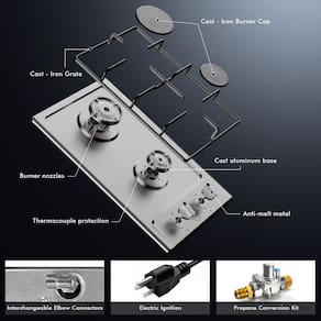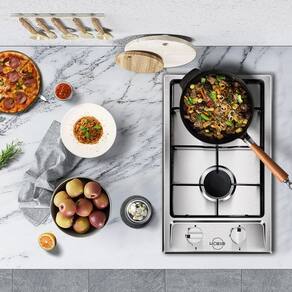 Hobsir 30.5 cm LPG/NG Dual Fuel Aço Inoxidável Cooktop 2 Queimadores, Buit-in, 110V Informações do produto: Material do produto: Aço inoxidável Tipo de combustível: adequado para propano ou NG Sistema de falha de saída de chama do termopar (FFD): Sim Tipo de ignição: botão de ignição eletrônica Tensão: 110 ~ 240 V ~ 50/60 Hz Tipo de instalação: embutido Potência do queimador: 10236 + 5971BTU Tamanho do produto: 51 x 30 x 9 cm. Tamanho embutido: 42 cm x 28 cm Queimador potente 10236+5971BTU O fogão a gás de 30 cm de combustível duplo vem com 2 queimadores selados potentes, incluindo um queimador semi-rápido 5971-BTU e um queimador rápido 10236-BTU. Grande poder de fogo, economize mais tempo para você cozinhar. Placa de fogão a gás combustível duplo GLG/NG A placa dupla a gás combustível é adequada para gás natural e propano líquido. Todos os acessórios de conversão serão incluídos no pacote de fogão a gás. Você pode trocar o combustível a gás sempre que quiser. Proteção segura para termopar. Para evitar vazamento de gás, o fogão a gás é equipado com sistema de falha de chama termopar, que desligará o gás automaticamente se uma chama não for detectada para garantir sua segurança. Fácil de limpar. Feito de superfície lisa de aço inoxidável e o suporte deste fogão a gás pode ser facilmente desmontado, o que facilita a limpeza do fogão a gás, basta limpá-lo com uma toalha úmida. Observação: um teste de vazamento de gás deve ser passado com solução com sabão antes de usar. Conteúdo da embalagem: 1 x fogão a gás. 4 parafusos. 4 ganchos 1 conector de cotovelo de propano 2 bocais de propano 1 x manual de instruções (idioma português não garantido). 1 tira de esponja. Não há encaixe de regulador de pressão de gás natural disponível, para sua segurança, é recomendável que você compre e instale este acessório. Se você não sabe como instalá-lo, instale-o por um eletricista profissional. - ?2 fontes de gás conversíveis? Observação: a configuração inicial do fogão a gás é para gás natural. Se sua casa estiver com gás natural, você não precisa fazer nenhuma alteração. E se você quiser usar propano líquido, você deve substituir os bicos NG por bicos de GLP e substituir o conector de cotovelo NG pelo conector de cotovelo de GLP. Todos os acessórios de conversão serão incluídos no pacote de fogão a gás. O fogão a propano de 2 bocas é adequado para gás natural e propano líquido. - ?Fácil de limpar? Feito de material de aço inoxidável de qualidade premium, o fogão a gás é resistente à corrosão, não tem ferrugem, resistência a altas temperaturas. A propósito, o suporte deste fogão a gás pode ser facilmente desmontado, o que facilita a limpeza do fogão a gás, basta limpá-lo com uma toalha úmida. - ?Fogão a propano com 2 queimadores? O fogão a gás de 30,5 cm com combustível duplo vem com 2 queimadores selados potentes, incluindo um queimador semi-rápido 5971-BTU e um queimador rápido 10236-BTU que permitem ajustar o fogo à vontade para atender às diferentes necessidades de temperatura de vários alimentos, como ferver, fritar, fritar, fritar, assar ast, vaporização, ferver. Os puxadores são feitos de materiais compostos de plástico e metal, permitem que você toque com segurança no botão enquanto cozinha sem queimar suas mãos. - ?NG e LGP?Uma das características destacadas desta estufa é versátil, você pode ser utilizada com gás natural ou gás propano. Com estufa de gás, podrás disfrutar de la comodidad de cocinar tus alimentos favoritos al aire libre, en tu apartamento o mientras viajas en tu vehículo recreativo. - ?Proteção de termopar? Para evitar vazamento de gás e proteger a segurança de você e sua família, nosso fogão a propano com 2 bocas está equipado com sistema de falha de chama por termopar (FFD). Com FFD, o fogão a gás de dois queimadores desligará o gás automaticamente se uma chama não for detectada para garantir sua segurança em uma emergência. A ignição por pulso elétrico usa uma energia CA de 110 V-220 V, e a parte superior do fogão a gás de 30 cm é muito fácil de acender e ajustar o calor. - ?Garantia de qualidade?Nosso queimador Hobsir hob gás vem com uma garantia de 1 ano e atendimento ao cliente 24 horas. Se você tiver alguma dúvida sobre a moldura, não hesite em entrar em contato conosco, a equipe da Hobsir hob está sempre online :) - ?Fogão a propano com 2 bocas? Aproveite o seu tempo de cozimento agora! Dimensões do produto: 31 cm L x 51 cm P x 9 cm A, Dimensões do recorte: 28 cm L x 40 cm P. Com seu tamanho compacto e queimadores eficientes, este cooktop de propano é perfeito para uso em trailers, barcos, acampamento ou até mesmo para festas de cozinha ao ar livre.