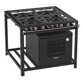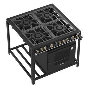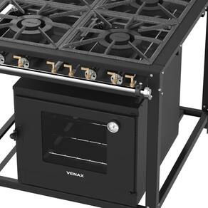 Tipo: Fogão industrial Marca: Venax Acendimento: Manual Queimadores: 4 Queimadores duplos(200mm) Espalha chama: Ferro fundido Trempe dos queimadores: Ferro fundido(400x400mm) Mesa dos queimadores: Aço revestido com pintura eletrostática Perfil da mesa: Estilo "U" (70mm) Bandeja coletora de resíduos: Sim Botões: Metálicos Forno: Sim Prateleira do forno: 1 Regulável Revestimento do forno: Limpa fácil Isolamento do forno: Lã de vidro Termômetro no forno Sim Porta do forno: Aço com visor de vidro Puxador da Porta: Aço com baquelite Estrutura do fogão: Aço revestido com pintura eletrostática Entrada de gás: Dupla(reversível) Medidas do produto: Altura 84cm - Largura 97cm - Profundidade 108cm