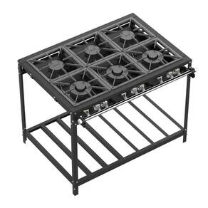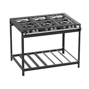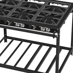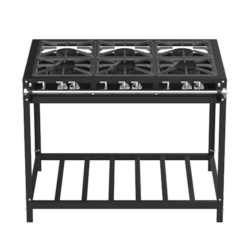 Tipo: Fogão industrial Marca: Venax Acendimento: Manual Queimadores: 3 Queimadores duplos(150mm) 3 Queimadores simples(120mm) Espalha chama: Ferro fundido Trempe dos queimadores: Ferro fundido(300x300mm) Mesa dos queimadores: Aço revestido com pintura eletrostática Perfil da mesa: Estilo "U" (60mm) Bandeja coletora de resíduos: Sim Botões: Metálicos Forno: Não Estrutura do fogão: Aço revestido com pintura eletrostática Entrada de gás: Dupla(reversível) Medidas do produto: Altura 84cm - Largura 107cm - Profundidade 84cm
