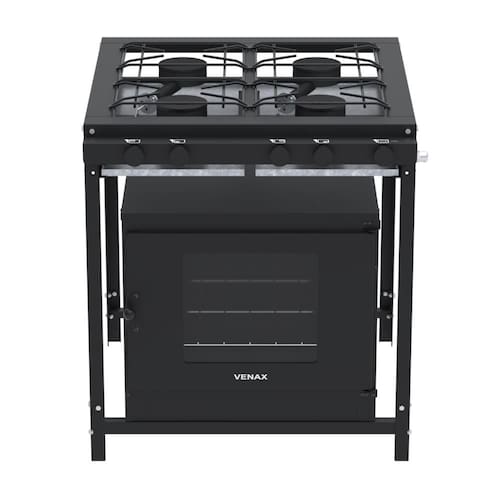 Tipo: Fogão industrial Marca: Venax Acendimento: Manual Queimadores: 4 Queimadores simples(120mm) Espalha chama: Ferro fundido Trempe dos queimadores: Esmaltadas Mesa dos queimadores: Aço revestido com pintura eletrostática Perfil da mesa: Estilo "U" (60mm) Bandeja coletora de resíduos: Sim Botões: Removíveis Forno: Sim Prateleira do forno: 1 Regulável Revestimento do forno: Esmalte limpa fácil Isolamento do forno: Lã de vidro Termômetro no forno: Não Porta do forno: Aço com visor de vidro Puxador da Porta: Aço com baquelite Estrutura do fogão: Aço revestido com pintura eletrostática Entrada de gás: Uma entrada, lado direito visto de frente Medidas do produto: Altura 84,5cm - Largura 77cm - Profundidade 82cm