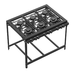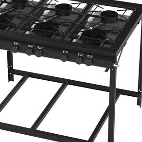 Tipo: Fogão industrial Marca: Venax Acendimento: Manual Queimadores: 3 Queimadores duplos(150mm) e 3 queimadores simples(120mm) Espalha chama: Ferro fundido Trempe dos queimadores: Esmaltadas Mesa dos queimadores: Aço revestido com pintura eletrostática Perfil da mesa: Estilo "U" (60mm) Bandeja coletora de resíduos: Sim Botões: Removíveis Forno: Não Estrutura do fogão: Aço revestido com pintura eletrostática Entrada de gás: Uma entrada, lado direito visto de frente Medidas do produto: Altura 84,5cm - Largura 109,5cm - Profundidade 82cm