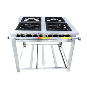 - Queimadores simples (120 mm de diâmetro) ou duplos (180 mm - com controle individual das chamas) em ferro fundido;