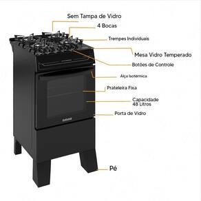 Fogão Itatiaia Electra Glass Plus 4 Bocas com Mesa de Vidro