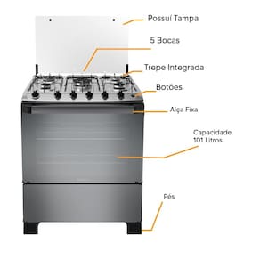 Espaço de sobra com forno de 101 litros Com um forno de 101 litros de capacidade, o Fogão New Dream permite preparar desde refeições do dia a dia até grandes assados para ocasiões especiais. Sua ampla capacidade é ideal para famílias grandes ou para quem adora receber amigos em casa. Além disso, o forno conta com luz interna e porta de vidro temperado, garantindo segurança e facilidade ao monitorar o preparo dos alimentos.
