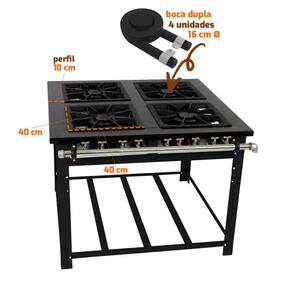 Fogão A Gás Maxi Baixa Pressão 4 Bocas Duplas Com pé e Espera Para Forno M4D4E - Venâncio