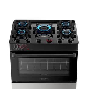 O modelo possui acendimento automático para mais praticidade no uso e trempes individuais com 6 apoios, que garantem firmeza até nas panelas maiores.O forno com 84 litros de capacidade permite preparar grandes receitas com facilidade. Conta com porta em vidro total, vidro interno removível e prateleira ajustável, para mais controle e praticidade na limpeza.