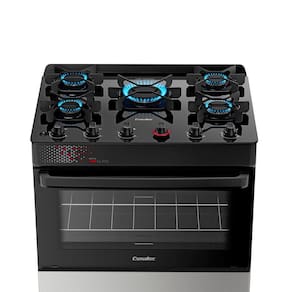 O modelo possui acendimento automático para mais praticidade no uso e trempes individuais com 6 apoios, que garantem firmeza até nas panelas maiores.O forno com 84 litros de capacidade permite preparar grandes receitas com facilidade. Conta com porta em vidro total, vidro interno removível e prateleira ajustável, para mais controle e praticidade na limpeza.