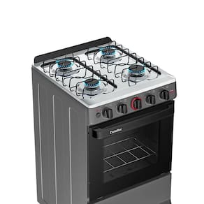 Quantidade de Bocas: 4 | Produto: Fogão | Alimentação: A gás | Mesa: Aço Inox | Acendimento automático: Sim | Voltagem: Bivolt | Cor: TITANIUM | Tipo: De piso