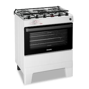 Com acendimento automático, o uso é prático e . Os queimadores bem distribuídos (3 família, 1 grande e 1 pequeno) oferecem flexibilidade para diferentes tipos de preparo, enquanto as trempes duplas em aço esmaltado garantem firmeza e durabilidade.