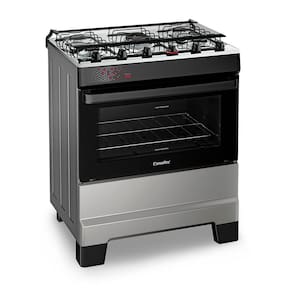 Trempes duplas com mais apoios: estabilidade reforçada para as panelas. Forno Limpa Fácil com 84 litros de capacidade: mais espaço para grandes receitas.
