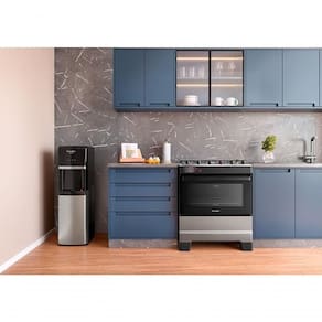 Quantidade de Bocas: 5 | Produto: Fogão | Alimentação: A gás | Mesa: Aço Inox | Acendimento automático: Sim | Tipo: De piso | Voltagem: Bivolt | Cor: INOX