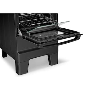 O forno Limpa Fácil com 50 litros de capacidade vem equipado com porta em vidro total, vidro interno removível e duas grades (uma deslizante e uma autodeslizante), proporcionando mais praticidade e segurança no manuseio de assadeiras. O timer mecânico permite o controle do tempo de preparo direto no painel, enquanto os botões removíveis, puxador ergonômico e pés altos com encaixe fácil completam a experiência com conforto e funcionalidade.