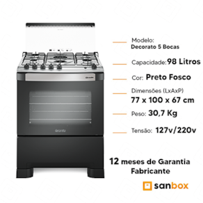O Fogão Mueller Decorato 5 Bocas é a combinação perfeita de design moderno, funcionalidade e potência na cozinha. Seu acabamento em preto fosco com mesa de Inox traz elegância e resistência, sendo fácil de limpar e ideal para quem busca um toque premium no ambiente.