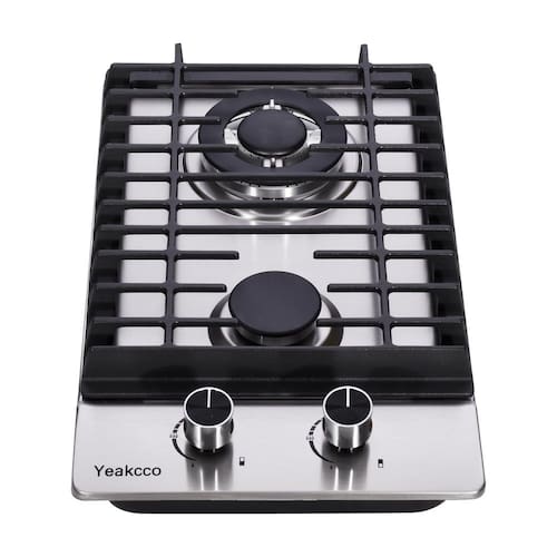Fogão a gás Yeakcco de 30cm com 2 queimadores Sabaf de alta eficiência, ideal para embutir e com sistema de ignição por pulso AC de 110V.Alimentação