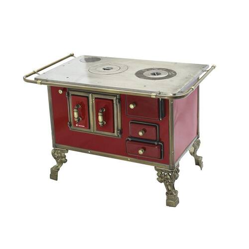 O Fogão a Lenha 03 da Linha Barroco conta com corpo e forno totalmente em aço carbono com acabamento esmaltado a fogo na pintura vermelha. Seus pés são em ferro fundido com acabamento em ouro envelhecido, contando também com varões em tubo de aço e guarnições em ferro fundido também com acabamento em ouro envelhecido garantindo qualidade exclusiva e um ótimo acabamento no seu Fogão a Lenha.