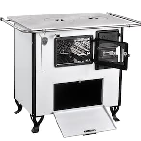FORNO: AÇO INOX | Ferro fundido: Nas portas do fogo, forno e pés | ISOLAMENTO TERMICO: Frente e laterais revestidas com isolamento térmico | COR: BRANCO | Fabricante: FORNOS PINHAL | É kit: Não | Voltagem: Sem voltagem | Selecione: 0 | Peso do Produto: 64 | Produto: Fogão a Lenha | Altura: 87 | Largura: 94