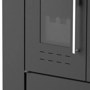 Chapa de alumínio, forno, grade do queimador em ferro fundido, varão de proteção em inox, interior do forninho e grade em inox 430, visor do forninho em vidro temperado, termômetro para conferir a temperatura do forninho, mexedor de brasa, pés com regulagem de altura, porta do queimador com visor em vidroTipo