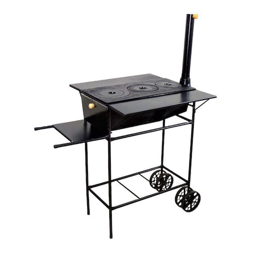 O fogão a lenha portátil e churrasqueira deixou de ser um item que confere apenas um sabor diferenciado às comidas. Esse modelo também confere às famílias as mais variadas vantagens, como garantir maior economia de energia elétrica e gás de cozinha, diminuir a poluição, além de decorar os espaços com muito mais charme. É ideal para assar frango, carnes, aves e peixes. Projetada para ambientes externos e internos como quintais, camping, áreas de piscina, praias, varandas entre outros. Saída de fumaça embutida e removível. Possui bandejas nas laterais para facilitar as atividades. Leve, prático para transportar, guardar e limpar. Carrinho com rodas para facilitar o transporte.