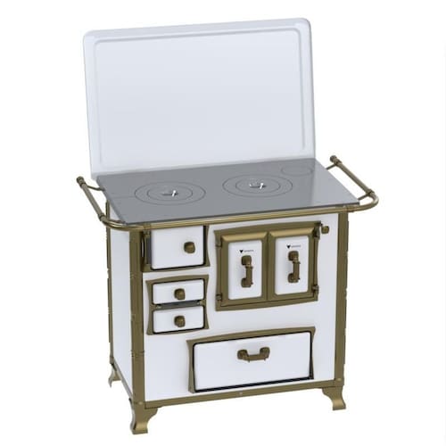 Tipo: Fogão a Lenha Chapa: Ferro Fundido Polido Varão de proteção: Tubo de Aço com Acabamento em Ouro Envelhecido* Suporte Varão de proteção: Modelo Séc. XVIII com Acabamento em Ouro Envelhecido* Caldeira: Não Fornalha: Tijolos Pré-Moldados Porta da Fornalha: Aço Esmaltado Tranca na Porta da Fornalha: Não Porta de Ar: Aço Esmaltado Gaveta de Cinzas: Sim Porta de Gaveta de Cinzas: Aço Esmaltado Forno: Sim Porta do Forno: Aço Esmaltado com Moldura em Alumínio e Acabamento Ouro Envelhecido* Prateleira do Forno: 1 Regulável Estufa: Sim Porta da Estufa: Aço Esmaltado Base Armazenamento de Lenha: Não Cantoneiras: Ouro Envelhecido* Guarnições das Portas: Design Séc. XVIII, Acabamento Ouro Envelhecido* Puxadores: Design Séc. XVIII, Acabamento Ouro Envelhecido* Tampa: Sim Pés: Ouro Envelhecido* Acessórios: Pá e Gancho para Manuseio do Produto Saída da Chaminé: Saida a Direita ou Saída a Esquerda, na chapa e Costas(visto de frente) (selecione na hora da compra) Revestimento Corpo do Produto: Esmalte Serigrafia: Não Serpentina: Não Marca: Venax
