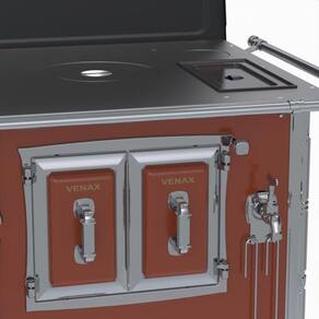 Tipo: Fogão a Lenha Chapa: Ferro Fundido Polido Varão de proteção: Tubo de Aço Cromado Suporte Varão de proteção: Modelo Séc. XVIII Cromado Caldeira: Sim Fornalha: Tijolos Pré-Moldados Porta da Fornalha: Aço Esmaltado Tranca na Porta da Fornalha: Não Porta de Ar: Aço Esmaltado Gaveta de Cinzas: Sim Porta de Gaveta de Cinzas: Aço Esmaltado Forno: Sim Porta do Forno: Dupla Esmaltada com Moldura Cromada Prateleira do Forno: 1 Regulável Estufa: Sim Porta da Estufa: Aço Esmaltado Base Armazenamento de Lenha: Não Cantoneiras: Inox Guarnições da Porta: Design Séc. XVIII Acabamento Cromado Puxadores: Design Séc. XVIII Acabamento Cromado Tampa: Sim Pés: Cromados Acessórios: Pá e Gancho para Manuseio Saída da Chaminé: Saída a Direita ou Saída a Esquerda, na chapa e Costas(visto de Frente) (selecione na hora da compra) Revestimento Corpo do Produto: Esmalte Serigrafia: Não Serpentina: Não Marca: Venax