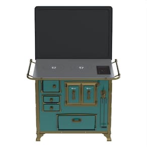 Tipo: Fogão a Lenha Chapa: Ferro Fundido Polido Varão de proteção: Tubo de Aço com Acabamento em Ouro Envelhecido* Suporte Varão de proteção: Modelo Séc. XVIII com Acabamento em Ouro Envelhecido* Caldeira: Sim Fornalha: Tijolos Pré-Moldados Porta da Fornalha: Aço Esmaltado Tranca na Porta da Fornalha: Não Porta de Ar: Aço Esmaltado Gaveta de Cinzas: Sim Porta de Gaveta de Cinzas: Aço Esmaltado Forno: Sim Porta do Forno: Aço Esmaltado com Moldura em Alumínio e Acabamento Ouro Envelhecido* Prateleira do Forno: 1 Regulável Estufa: Sim Porta da Estufa: Aço Esmaltado Base Armazenamento de Lenha: Não Cantoneiras: Ouro Envelhecido* Guarnições da Porta: Design Séc. XVIII, Acabamento Ouro Envelhecido* Puxadores: Design Séc. XVIII, Acabamento Ouro Envelhecido* Tampa: Sim Pés: Ouro Envelhecido* Acessórios: Pá e Gancho para Manuseio do Produto Saída da Chaminé: Saida a Direita ou Saída a Esquerda, na chapa e Costas(visto de frente) (selecione na hora da compra) Revestimento Corpo do Produto: Esmalte Serigrafia: Não Serpentina: Não Marca: Venax