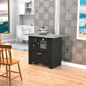 Fogão a lenha com chapa de alumínio, forno, termômetro, mexedor de brasa, pés com regulagem de altura, acabamento em pintura epóxi, revestido com isolamento térmico e tijolos refratário no queimador, grade do queimador em ferro fundido, varão de proteção inox, interior do forninho e grade em inox 430, visor do forninho em vidro temperado.Tipo