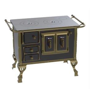 - Porta do Forno: Aço Esmaltado com Moldura em Alumínio e Acabamento Ouro Envelhecido*;