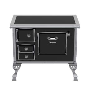 - Tipo: Fogão a Lenha; - Chapa: Vidro Vitrocerâmico com Moldura em inox; - Varão de proteção: Tubo de Aço Cromado; - Suporte Varão de proteção: Cromado; - Caldeira: Não; - Fornalha: Tijolos Pré-Moldados; - Porta da Fornalha: Aço Esmaltado; - Tranca na Porta da Fornalha: Não; - Porta de Ar: Aço Esmaltado; - Gaveta de Cinzas: Sim; - Porta de Gaveta de Cinzas: Aço Esmaltado; - Forno: Sim; - Porta do Forno: Aço Esmaltado; - Prateleira do Forno: 1 Regulável; - Estufa: Não; - Base Armazenamento de Lenha: Não; - Cantoneiras: Inox; - Guarnições da Porta: Cromadas; - Puxadores: Cromadas; - Tampa: Não; - Pés: Cromados; - Acessórios: Pá e Gancho para Manuseio; - Saída da Chaminé: Saída a Direita, somente nas Costas (visto de Frente); - Revestimento Corpo do Produto: Esmalte; - Serigrafia: Não; - Serpentina: Não; - Marca: Venax.
