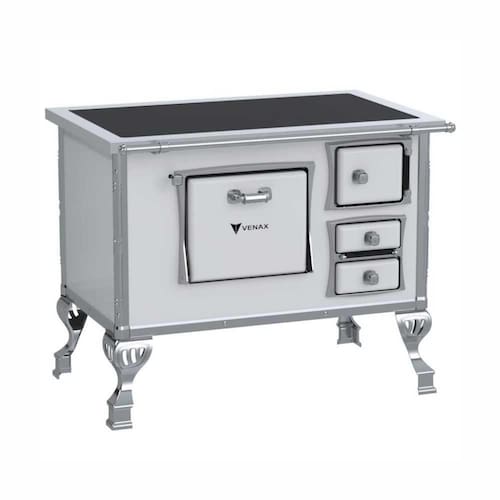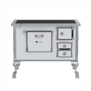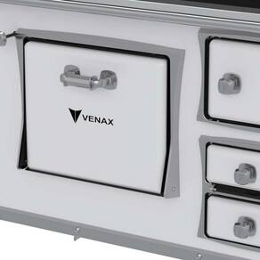 - Tipo: Fogão a Lenha; - Chapa: Vidro Vitrocerâmico com Moldura em inox; - Varão de proteção: Tubo de Aço Cromado; - Suporte Varão de proteção: Cromado; - Caldeira: Não; - Fornalha: Tijolos Pré-Moldados; - Porta da Fornalha: Aço Esmaltado; - Tranca na Porta da Fornalha: Não; - Porta de Ar: Aço Esmaltado; - Gaveta de Cinzas: Sim; - Porta da Gaveta de Cinzas: Aço Esmaltado; - Forno: Sim; - Porta do Forno: Aço Esmaltado; - Prateleira do Forno: 1 Regulável; - Estufa: Não; - Base Armazenamento de Lenha: Não; - Cantoneiras: Inox; - Guarnições da Porta: Cromadas; - Puxadores: Cromadas; - Tampa: Não; - Pés: Cromados; - Acessórios: Pá e Gancho para Manuseio; - Saída da Chaminé: À Esquerda, somente nas Costas (Olhando de Frente); - Revestimento Corpo do Produto: Esmalte; - Serigrafia: Não; - Serpentina: Não; - Marca: Venax; - Garantia: 1 Ano.