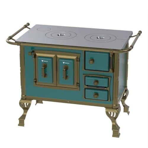 Tipo: Fogão a Lenha Chapa: Ferro Fundido Polido Varão de proteção: Tubo de Aço com Acabamento em Ouro Envelhecido* Suporte Varão de proteção: Modelo Séc. XVIII com Acabamento em Ouro Envelhecido* Caldeira: Não Fornalha: Tijolos Pré-Moldados Porta da Fornalha: Aço Esmaltado Tranca na Porta da Fornalha: Não Porta de Ar: Aço Esmaltado Gaveta de Cinzas: Sim Porta de Gaveta de Cinzas: Aço Esmaltado Forno: Sim Porta do Forno: Aço Esmaltado com Moldura em Alumínio e Acabamento Ouro Envelhecido* Prateleira do Forno: 1 Regulável Estufa: Não Base Armazenamento de Lenha: Não Cantoneiras: Ouro Envelhecido* Guarnições da Porta: Design Séc. XVIII, Ouro Envelhecido* Puxadores: Design Séc. XVIII, Acabamento Ouro Envelhecido* Tampa: Não Pés: Ouro Envelhecido* Acessórios: Pá e Gancho para Manuseio Saída da Chaminé: Saída a Direita ou Esquerda, na chapa e costas(Visto de Frente) Revestimento Corpo do Produto: Esmalte Serigrafia: Não Serpentina: Não Marca: Venax
