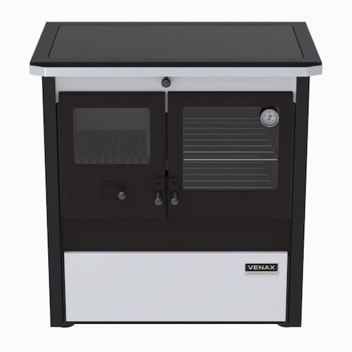 Tipo: Fogão a lenha Chapa: Vidro Vitrocerâmico com moldura Revistada na Cor Preta Dupla Combustão: Sim Varão de proteção: Frontal de alumínio escovado Suporte do varão de proteção: Aço 3mm pintado em preto Fornalha: Tijolos refratários pré-moldados Porta da fornalha: Vidro Vitrocerâmico Tranca da porta da fornalha: Sim Porta do ar: Esmaltada Gaveta de cinzas: esmaltada Forno: Sim Porta do forno: Vidro Vitrocerâmico Prateleiras do forno: 2 removíveis Guarnições das portas: Chapa de aço Puxadores: Baquelite na cor preta Pés: 4 pés reguláveis Acessórios: Pé e gancho para manuseio Saída da chaminé: Central traseira Revestimento corpo do produto: Pintura eletrostática Termômetro no forno: Sim