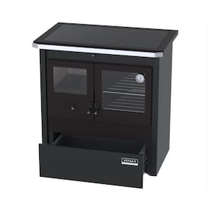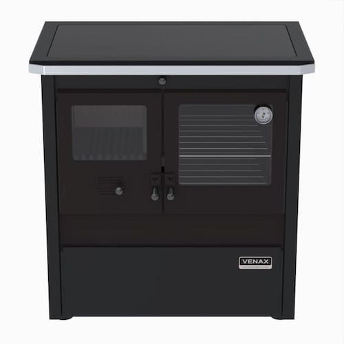 Tipo: Fogão a lenha Chapa: Vidro Vitrocerâmico com moldura Pintada Dupla Combustão: Sim Varão de proteção: Frontal de alumínio escovado Suporte do varão de proteção: Aço 3mm pintado em preto Fornalha: Tijolos refratários pré-moldados Porta da fornalha: Vidro Vitrocerâmico Tranca da porta da fornalha: Sim Porta do ar: Esmaltada Gaveta de cinzas: esmaltada Forno: Sim Porta do forno: Vidro Vitrocerâmico Prateleiras do forno: 2 removíveis Guarnições das portas: Chapa de aço Puxadores: Baquelite na cor preta Pés: 4 pés reguláveis Acessórios: Pé e gancho para manuseio Saída da chaminé: Central traseira Revestimento corpo do produto: Pintura eletrostática Termômetro no forno: Sim