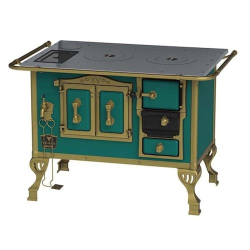 Tipo: Fogão a Lenha Chapa: Ferro Fundido Polido Varão de Proteção: Tubo de Aço com Acabamento em Ouro Envelhecido* Suporte Varão de proteção: Modelo Séc. XV acabamento Ouro Envelhecido* Caldeira: Sim Fornalha: Tijolos Pré-Moldados Porta da Fornalha: Aço Esmaltado com Moldura em Ouro Envelhecido* Tranca na Porta da Fornalha: Sim Porta de Ar: Ferro Fundido Pintado Gaveta de Cinzas: Sim Porta de Gaveta de Cinzas: Aço Esmaltado Forno: Sim Porta do Forno: Aço Esmaltado, Moldura em Ferro Fundido Acabamento Ouro Envelhecido* Prateleira do Forno: 1 Regulável Estufa: Não Base Armazenamento de Lenha: Não Cantoneiras: Ouro Envelhecido* Guarnições das Portas: Design Séc. XV acabamento Ouro Envelhecido* Puxadores: Design Séc. XV Acabamento Ouro Envelhecido* Tampa: Não Pés: Ouro Envelhecido* Acessórios: Pá e Gancho para Manuseio Saída da Chaminé: Saída a Direita ou Saída a Esquerda, na chapa e costas(Visto de Frente) (selecione na hora da compra) Revestimento Corpo do Produto: Esmaltado Serigrafia: Não Serpentina: Não Marca: Venax