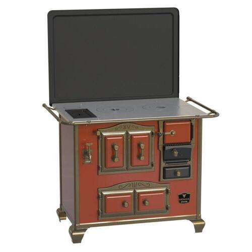 Tipo: Fogão a Lenha Chapa: Ferro Fundido Polido Varão de proteção: Tubo de Aço com Acabamento em Ouro Envelhecido* Suporte Varão de proteção: Modelo Séc. XV acabamento Ouro envelhecido* Caldeira: Sim Fornalha: Tijolos Pré-Moldados Varão de proteção: Tubo de Aço com Acabamento em Ouro Envelhecido* Tranca na Porta da Fornalha: Sim Porta de Ar: Ferro Fundido Pintado Gaveta de Cinzas: Sim Porta de Gaveta de Cinzas: Aço Esmaltado Forno: Sim Porta do Forno: Dupla em Aço Esmaltado, Moldura em Ferro Fundido Acabamento Ouro Envelhecido* Prateleira do Forno: 1 Regulável Estufa: Sim Porta da Estufa: Dupla em Aço Esmaltado, Moldura em Ferro Fundido Acabamento Ouro Envelhecido* Base Armazenamento de Lenha: Não Cantoneiras: Ouro Envelhecido* Guarnições da Porta: Design Séc. XV acabamento Ouro envelhecido* Puxadores: Design Séc. XV acabamento Ouro envelhecido* Tampa: Sim Pés: Design Séc. XV acabamento Ouro envelhecido* Acessórios: Pá e Gancho para Manuseio Saída da Chaminé: Saída a Direita ou Saída a Esquerda, na chapa e costas(Visto de Frente) (selecione na hora da compra) Revestimento Corpo do Produto: Esmaltado Serigrafia: Não Serpentina: Não Marca: Venax