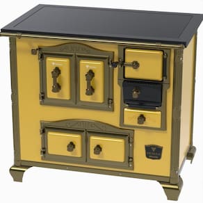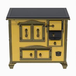 Tipo: Fogão a Lenha Chapa: Vidro Vitrocerâmico com moldura preta Varão de Proteção: Tubo de Aço com Acabamento em Ouro Envelhecido* Suporte Varão de proteção: Modelo Séc. XV Acabamento Ouro Envelhecido* Caldeira: Não Fornalha: Tijolos Pré-Moldados Porta da Fornalha: Aço Esmaltado com moldura em Ouro envelhecido* Tranca na Porta da Fornalha: Sim Porta de Ar: Aço Esmaltado Gaveta de Cinzas: Sim Porta de Gaveta de Cinzas: Aço Esmaltado Forno: Sim Porta do Forno: Dupla em Aço Esmaltado, Moldura em Ferro Fundido Acabamento Ouro Envelhecido* Prateleira do Forno: 1 Regulável Estufa: Sim Porta da Estufa: Dupla em Aço Esmaltado, Moldura em Ferro Fundido Acabamento Ouro Envelhecido* Base Armazenamento de Lenha: Não Cantoneiras: Ouro Envelhecido* Guarniçoes da Porta: Design Acabamento Ouro envelhecido* Puxadores: Design Séc. XV acabamento Ouro envelhecido* Tampa: Não Pés: Design Séc. XV Acabamento Ouro Envelhecido* Acessórios: Pá e Gancho para Manuseio Saída da Chaminé: Saida a Direita ou Saída Esquerda, nas Costas(visto de frente) Revestimento Corpo do Produto: Esmalte Serigrafia: Não Serpentina: Não Marca: Venax