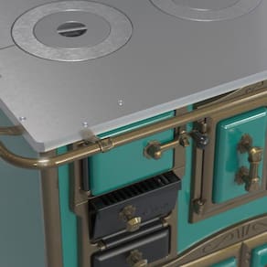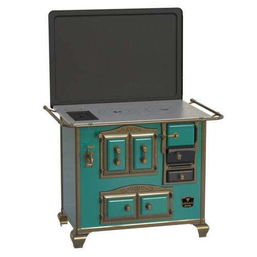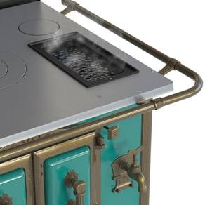 Tipo: Fogão a Lenha Chapa: Ferro Fundido Polido Varão de proteção: Tubo de Aço com Acabamento em Ouro Envelhecido* Suporte Varão de proteção: Modelo Séc. XV acabamento Ouro envelhecido* Caldeira: Sim Fornalha: Tijolos Pré-Moldados Porta da Fornalha: Aço Esmaltado com moldura em Ouro envelhecido* Tranca na Porta da Fornalha: Sim Porta de Ar: Ferro Fundido Pintado Gaveta de Cinzas: Sim Porta de Gaveta de Cinzas: Aço Esmaltado Forno: Sim Porta do Forno: Dupla em Aço Esmaltado, Moldura em Ferro Fundido Acabamento Ouro Envelhecido* Prateleira do Forno: 1 Regulável Estufa: Sim Porta da Estufa: Dupla em Aço Esmaltado, Moldura em Ferro Fundido Acabamento Ouro Envelhecido* Base Armazenamento de Lenha: Não Cantoneiras: Ouro Envelhecido* Guarnições da Porta: Design Séc. XV acabamento Ouro envelhecido* Puxadores: Design Séc. XV acabamento Ouro envelhecido* Tampa: Sim Pés: Design Séc. XV acabamento Ouro envelhecido* Acessórios: Pá e Gancho para Manuseio Saída da Chaminé: Saída a Direita ou Saída a Esquerda, na chapa e costas(Visto de Frente) (selecione na hora da compra) Revestimento Corpo do Produto: Esmaltado Serigrafia: Não Serpentina: Não Marca: Venax