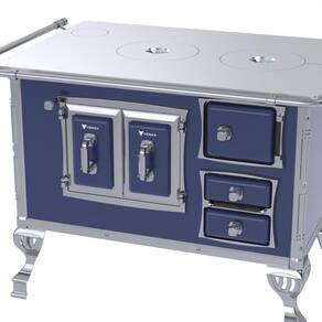 Características: Fogão a Lenha N2 Séc.XVIII, com Chapa de Alumínio Polida, Varão de Proteção Cromado, Corpo em Chapa QCV esmaltada, Cantoneiras em Inox, Suporte dos Varões em Zamak, Porta Dupla no Forno, Guarnições das Portas e Pés em Alumínio Polido, Forno Esmaltado, Puxadores em Zamak.