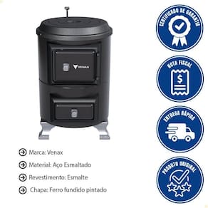 - Aqueça seu ambiente com charme, eficiência e tradição com o Fogão a Lenha Venax Salamandra 7904.