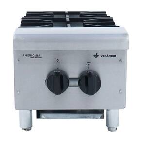 O Fogão de Mesa Americano conta com sistema a gás de baixa pressão. Seus queimadores são fabricados em ferro fundido tipo estrela de excelente rendimento com potência de 4,332 kcal contando com controle individual de queimadores e grelhas removíveis em monobloco de ferro fundido com 8 pontas na parte superior e arredondado na parte inferior, possibilitando um melhor aproveitamento do calor.