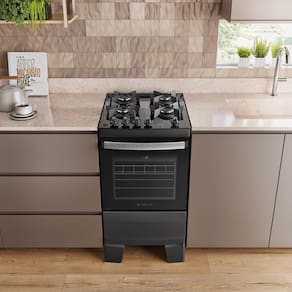 A experiência de cozinhar torna-se muito mais prática com os queimadores maiores e reforçados, que garantem agilidade no preparo das suas receitas. O forno é um show à parte: conta com duas prateleiras, sendo uma autodeslizante, facilitando a retirada dos pratos com total segurança. Além disso, o visor amplo com luz interna permite que você acompanhe o ponto ideal dos assados sem precisar abrir a porta, mantendo o calor e a eficiência.