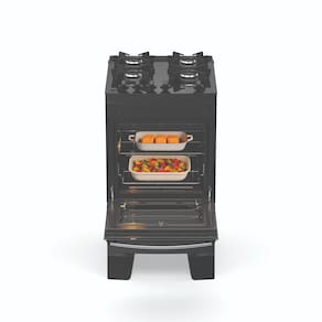 Material da mesa: Vidro temperado Tipo de acendimento: Automático Botões removíveis: Sim Forno: Limpa Fácil Número de prateleiras do forno: 2 Prateleiras removíveis: Sim Luz no forno: Sim Porta do forno removível: Sim Trempes individuais: Sim Queimador tripla chama: Não Controle do painel: Mecânico Temperatura máxima do forno: 290?°C Classificação energética – Mesa: A Classificação energética – Forno: A Cor: Preto Potência dos queimadores: 2 rápidos – 2,0 kW 2 semirrápidos – 1,67 kWTipo
