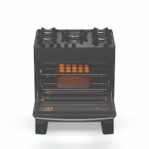 Material da mesa: Vidro temperado Tipo de acendimento: Automático Botões removíveis: Sim Forno: Limpa Fácil Número de prateleiras do forno: 2 Prateleiras removíveis: Sim Prateleira deslizante: Sim Luz no forno: Sim Porta do forno removível: Sim Trempes individuais: Sim Queimador tripla chama: Sim Controle do painel: Mecânico Temperatura máxima do forno: 290?°C Classificação energética – Mesa: A Classificação energética – Forno: A Cor: PretoTipo