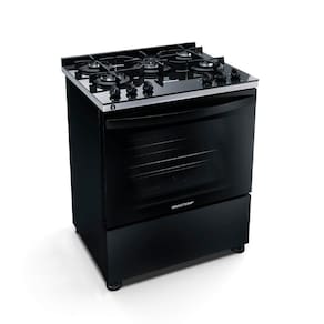 Fogão Brastemp 5 Bocas Mesa De Vidro E Turbo Chama Preto Bfs5vce - Bivolt - Fogão de Piso Brastemp 5 Bocas com Mesa de Vidro e Turbo Chama