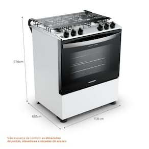 Dimensões do Produto Embalado: 81,4 L x 100 A x 77,7 P cm (p/ fogão de piso)