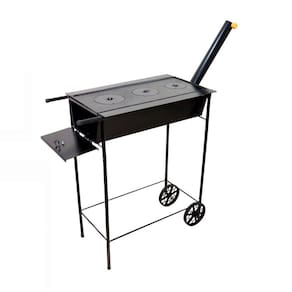 O fogão a lenha portátil e churrasqueira Mineiro deixou de ser um item que confere apenas um sabor diferenciado às comidas. Esse modelo também confere às famílias as mais variadas vantagens, como garantir maior economia de energia elétrica e gás de cozinha, diminuir a poluição, além de decorar os espaços com muito mais charme. É ideal para assar frango, carnes, aves e peixes. Projetada para ambientes externos e internos como quintais, camping, áreas de piscina, praias, varandas entre outros. Saída de fumaça embutida e removível. Leve, prático para transportar, guardar e limpar. Carrinho com rodas para facilitar o transporte.